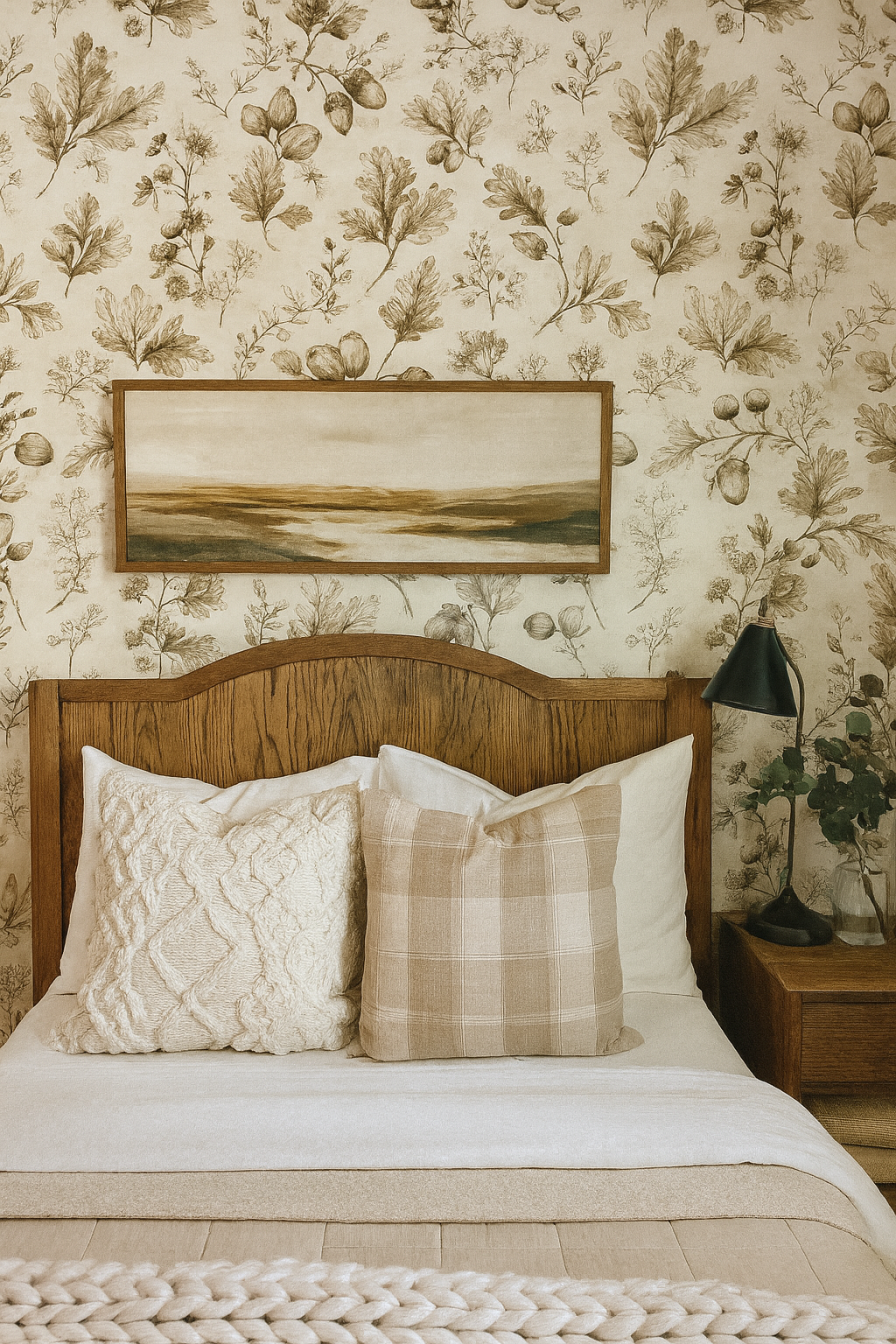 A nostalgic woodland sketch brought to life, Acorn & Ink features delicately crosshatched illustrations of oak leaves, acorns, and wild botanicals in soft sepia tones on a cream linen-textured background. This classic nature-inspired wallpaper is perfect for cozy libraries, nature-themed nurseries, or rustic farmhouse entryways. It brings an old-world botanical charm with quiet sophistication.