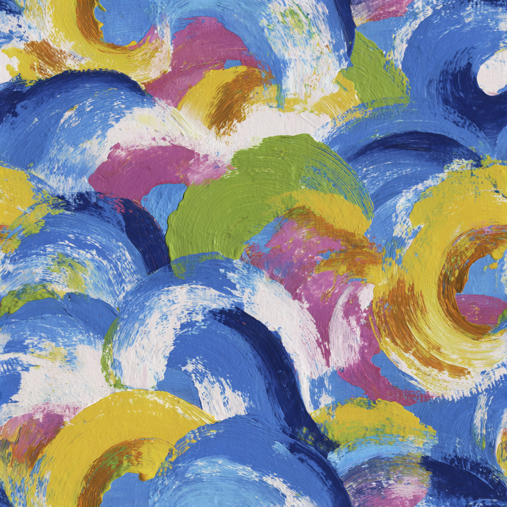 A dance of color and motion, Arcadia Tide captures the rolling rhythm of sea and sky in bold, sweeping arcs. Ultramarine blues crash into lemon yellows, rose pinks, and seafoam greens — layered with spontaneous, gestural brushwork that feels alive with wind and water. It’s abstract, yet unmistakably coastal, radiating optimism and vitality. Ideal for beach houses, creative studios, or bathrooms where movement and freshness are key, this design balances serenity with exhilaration. Against white oak or coastal blues, it becomes an instant focal point, echoing the energy of crashing surf without literal imagery.