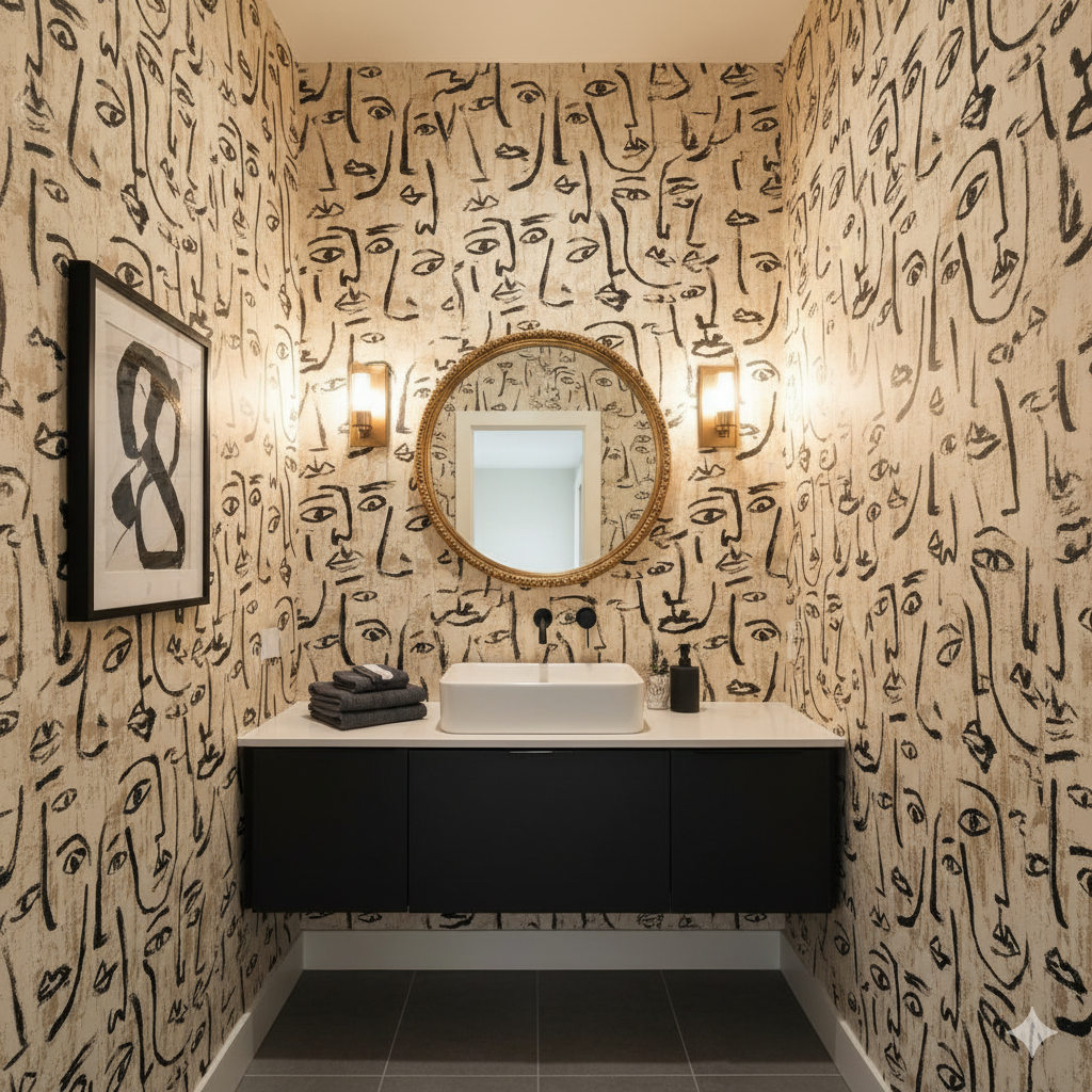 Expressive, hand-painted faces drift across a warm parchment ground, their bold black lines exuding the energy of an artist’s sketchbook. The style is reminiscent of modernist studios in Paris or Barcelona, where spontaneous strokes captured fleeting emotion and character. This wallpaper carries a strong artistic statement — perfect for loft-style apartments, creative studios, or eclectic dining spaces. It brings conversation and curiosity into any room, working beautifully behind shelving, in powder rooms, or as an accent wall where bold personality is desired. The interplay between abstraction and figuration ensures it feels timeless and contemporary all at once.