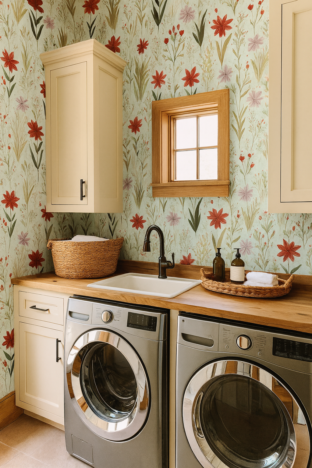 Wallpaper pattern is 24" x 24" repeat.