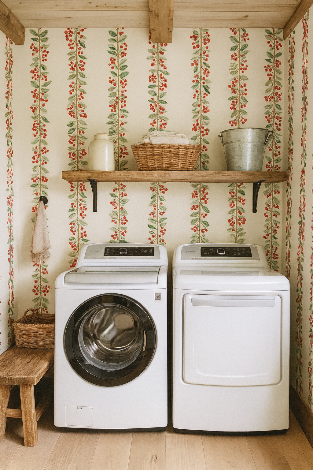 Playful sprays of bright red Toyon berries hang from vertical stems with glossy green leaves in this festive and fresh botanical wallpaper. The hand-painted style and clean white background make it ideal for holiday decor, farmhouse kitchens, kids’ rooms, or even cheerful accent walls in mudrooms.