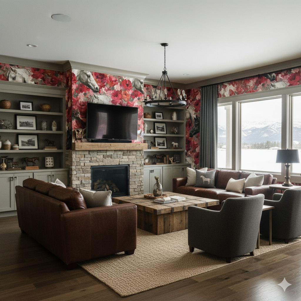 Bridle Rouge is an opulent symphony of equestrian grace and painterly abandon. Cream and sable horses emerge from a sea of crimson roses, their coats catching soft light like oil paint on canvas. The brushwork pulses with energy — thick, expressive, and unabashedly romantic. This wallpaper is cinematic in scale, ideal for dining rooms, lounges, or creative studios seeking bold emotion and tactile luxury. Bridle Rouge embodies passion and poise — a visual crescendo that turns walls into living art.