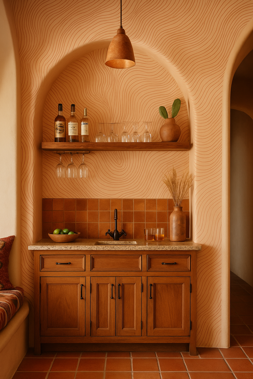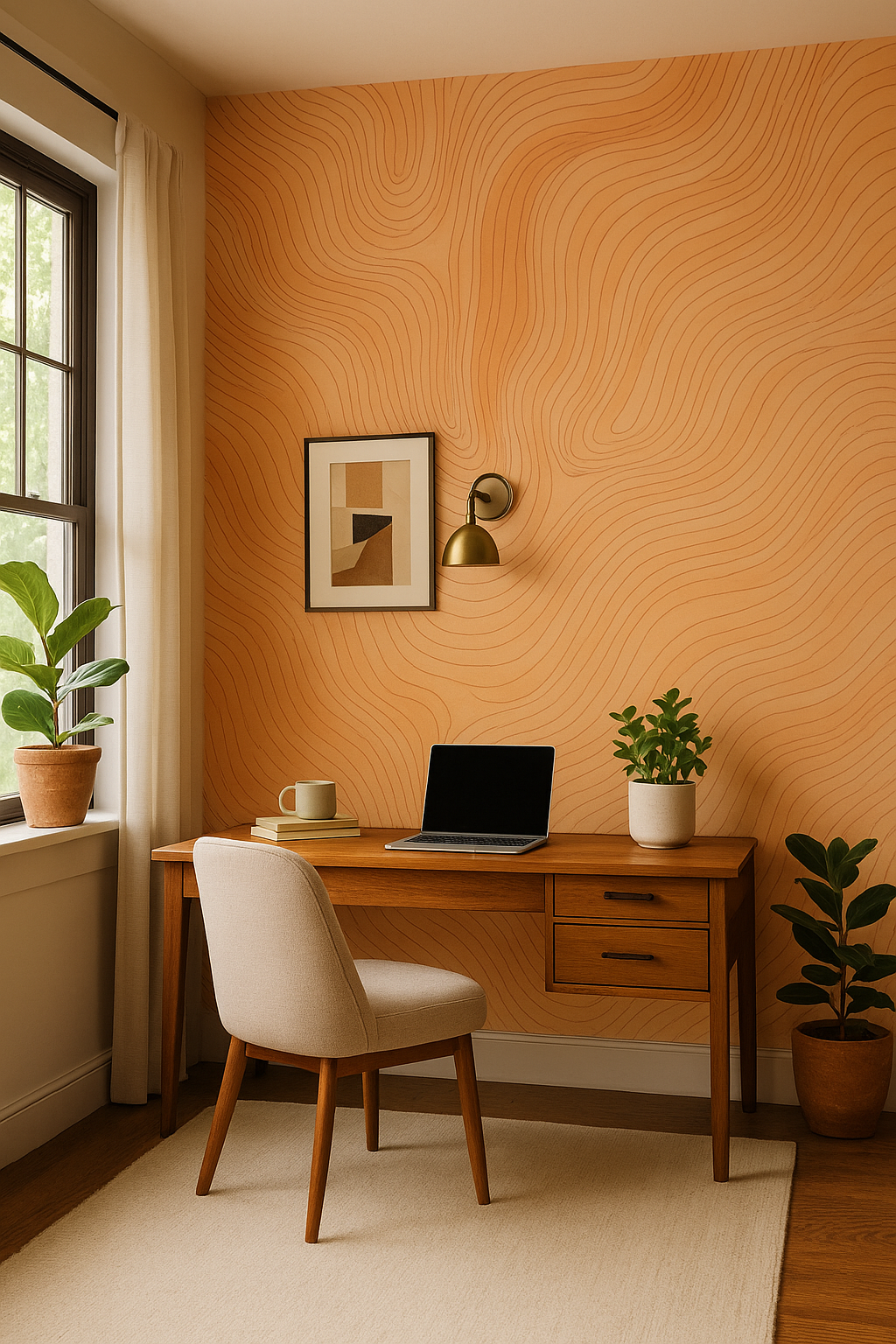 Canyon Lines layers abstract linear motifs with fluid movement and desert-inspired tones. The result is a sophisticated modern backdrop with organic character.