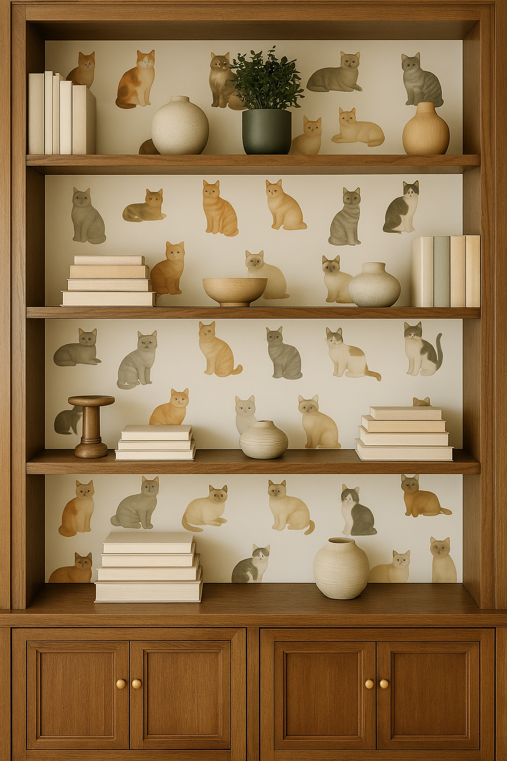 Cat’s Meow Wallpaper celebrates feline whimsy with an array of charming watercolor-style cats in various playful poses against a neutral or softly textured background. This lighthearted design adds joy to kids’ rooms, playrooms, or the spaces of cat lovers everywhere. Great for those searching for cat wallpaper, whimsical animal wallpaper, watercolor cat wall coverings, or playful modern wallpaper for eclectic interiors.
