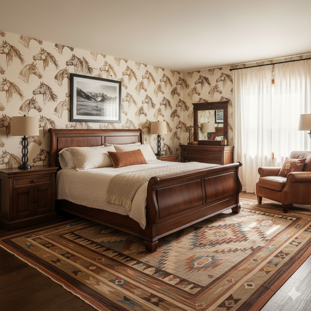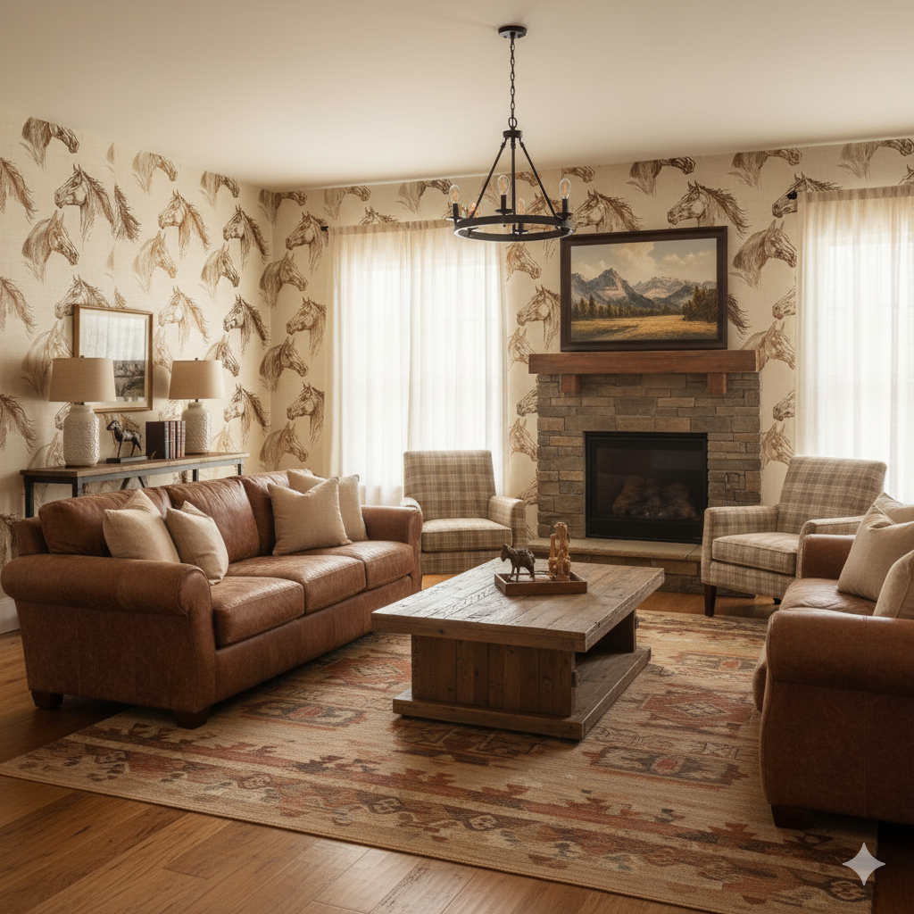 This painterly scene depicts herds of cattle grazing across a soft, impressionistic brushland landscape. The muted earth tones of sage, wheat, and dusty taupe capture the golden light of dusk on the plains. Each cow feels alive within the sweeping strokes, offering a mural-like presence that brings depth and narrative to a space. Ideal for dining rooms, great rooms, or ranch entryways where you want to evoke Western storytelling. The texture of the brushstrokes gives it an oil-painting quality, making it feel more like art than wallpaper.