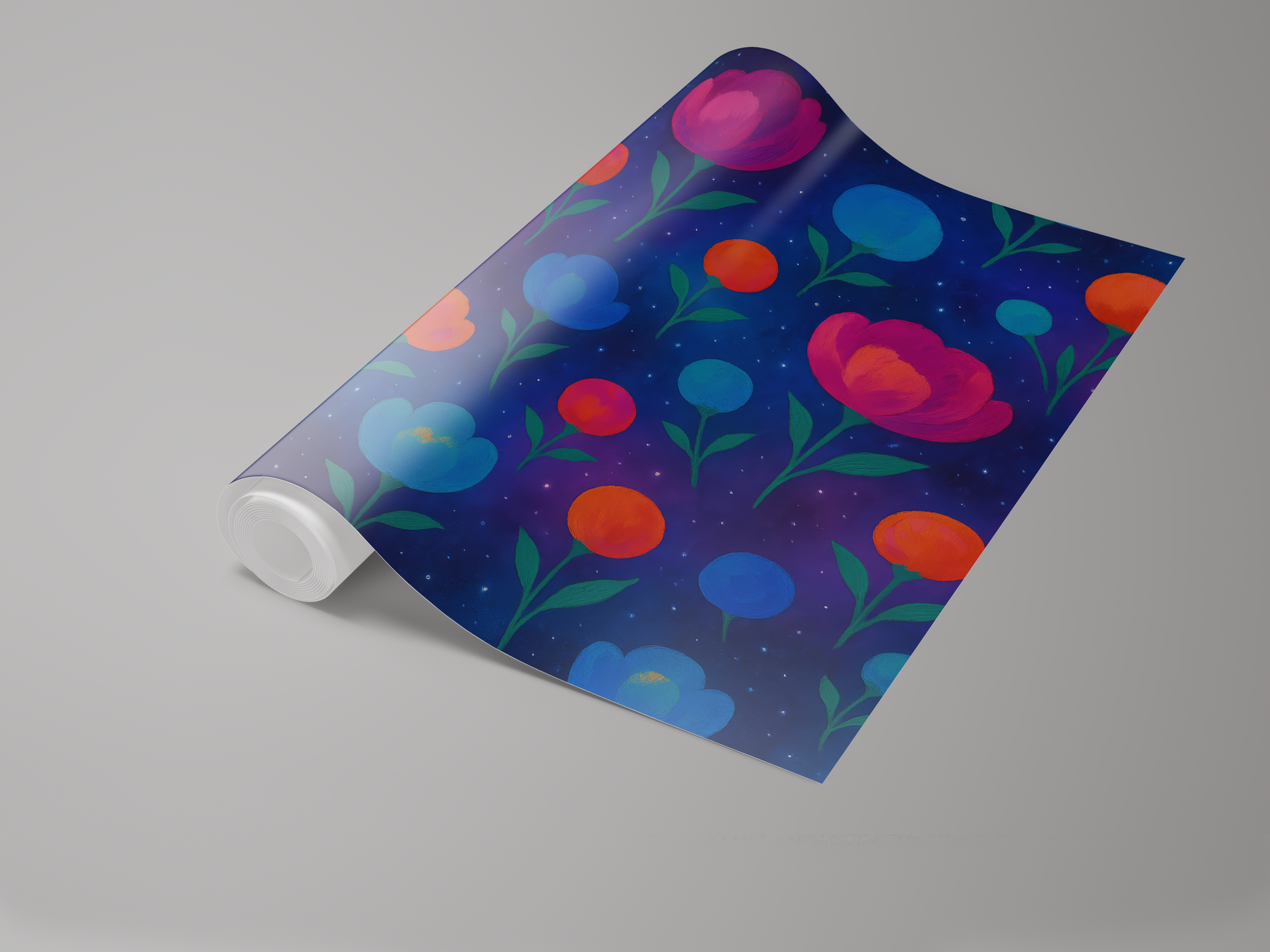 Cosmic Bloom Wallpaper is a playful, surrealist floral pattern featuring vibrant peony-like orbs in electric violet, coral, and aqua hues floating on a deep indigo night-sky backdrop. Designed for maximalist and eclectic interiors, this whimsical wallpaper is ideal for accent walls, kids’ spaces, creative studios, or anywhere you want to spark imagination. Perfect for those searching for cosmic wallpaper, whimsical floral wallpaper, modern maximalist wallpaper, or bold night sky-inspired wall coverings.