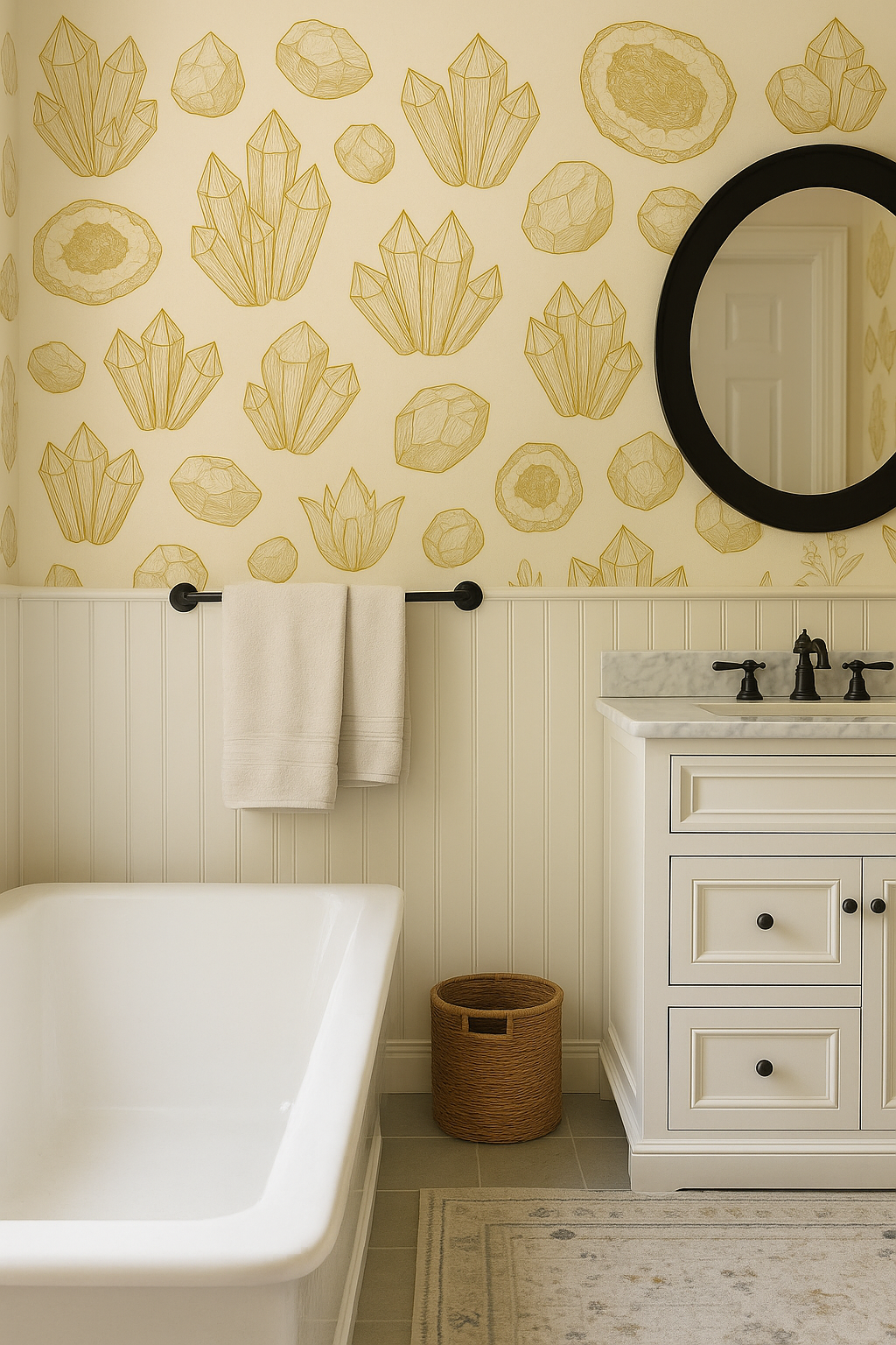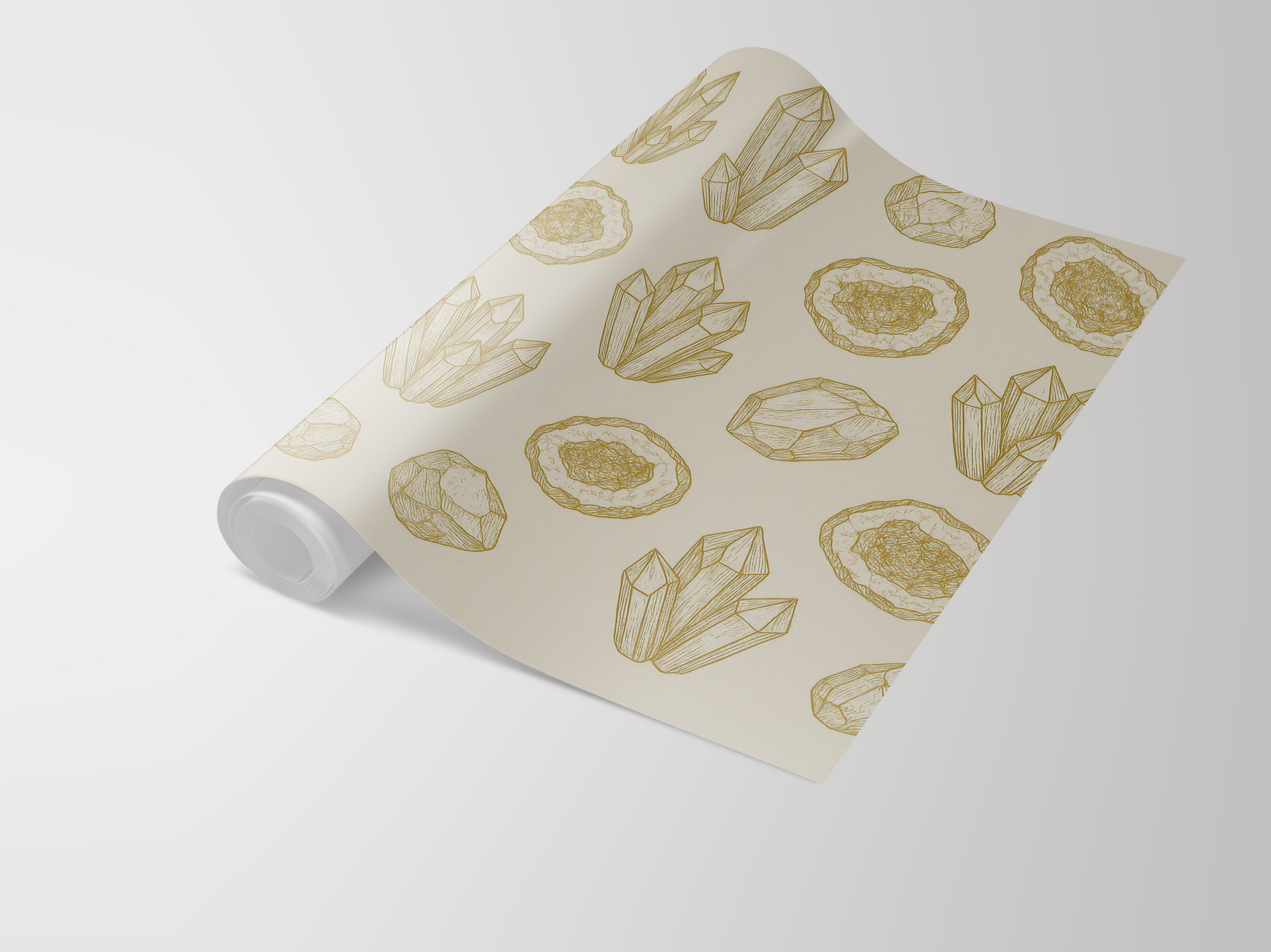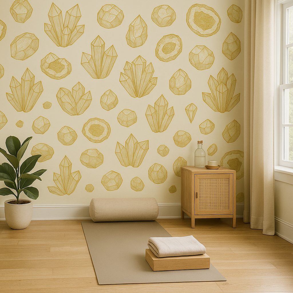 Delicate, hand-sketched crystals and minerals create a soft, celestial rhythm across your walls. With its neutral palette and bohemian soul, this design is perfect for those who love natural textures, modern mysticism, or the quiet beauty of earth’s treasures. It brings grounding energy to any space while keeping things light and elevated.