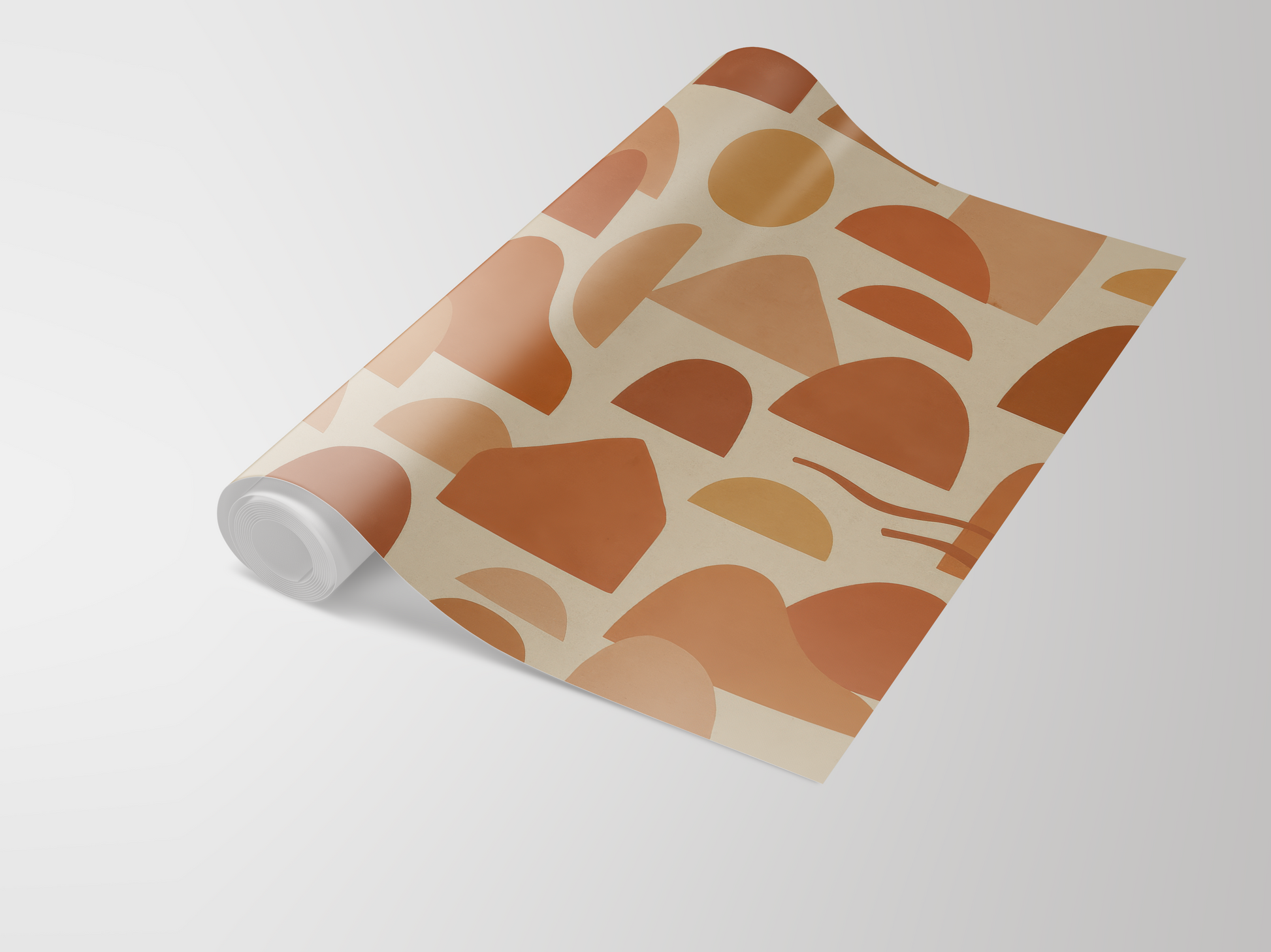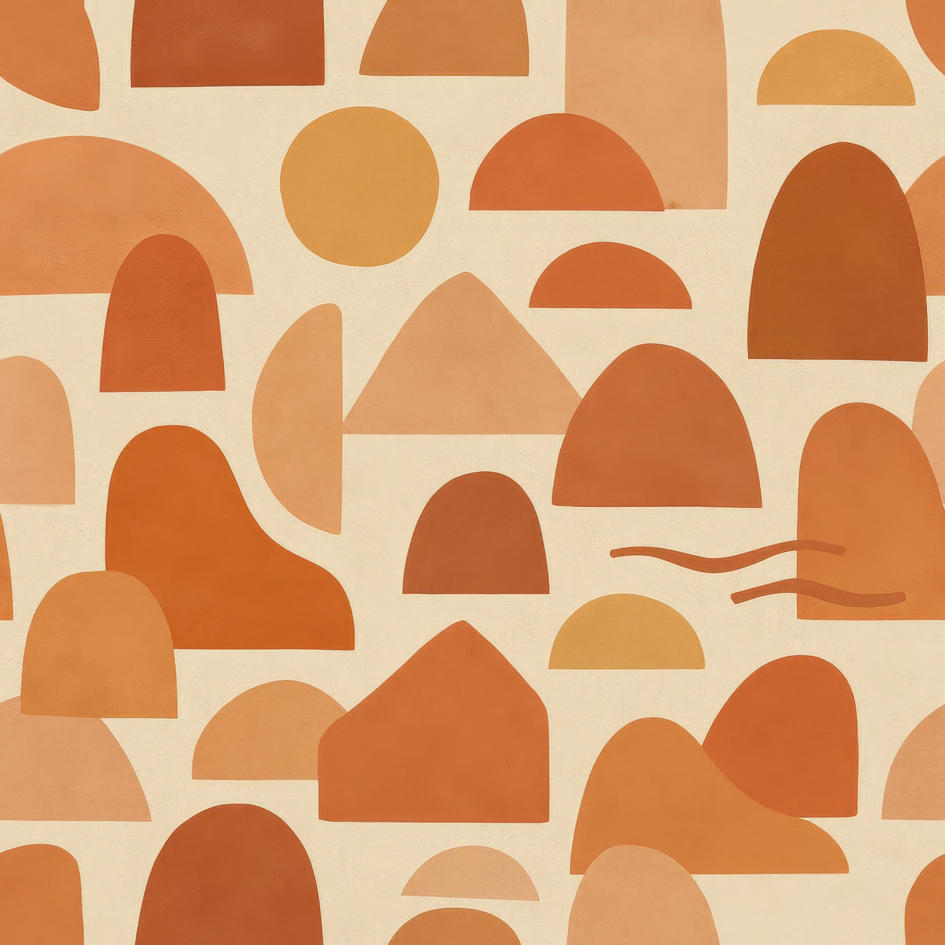 Desert Sunset channels the spirit of the Southwest, featuring abstract desert forms in sunset hues of coral, rust, and sienna. Organic and contemporary, it’s perfect for a modern boho look.