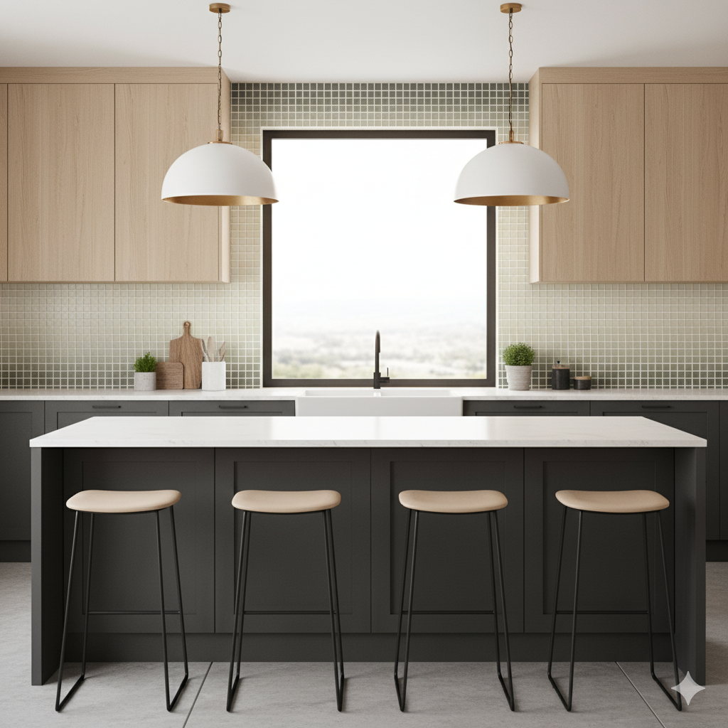 This gradient mosaic tile effect transforms from deep charcoal into airy cream, as though light is slowly filtering through fog or dawn breaking across the horizon. Each hand-drawn square retains a gentle wobble that avoids rigid perfection, lending it an artisanal quality instead of sterile geometry. The shifting tonal range makes this wallpaper incredibly versatile — modern enough for minimalist bathrooms or kitchens, yet soft enough for a transitional living room or office. Against metallic finishes or natural stone, the effect is striking, creating a sense of rhythm and subtle movement across the walls.