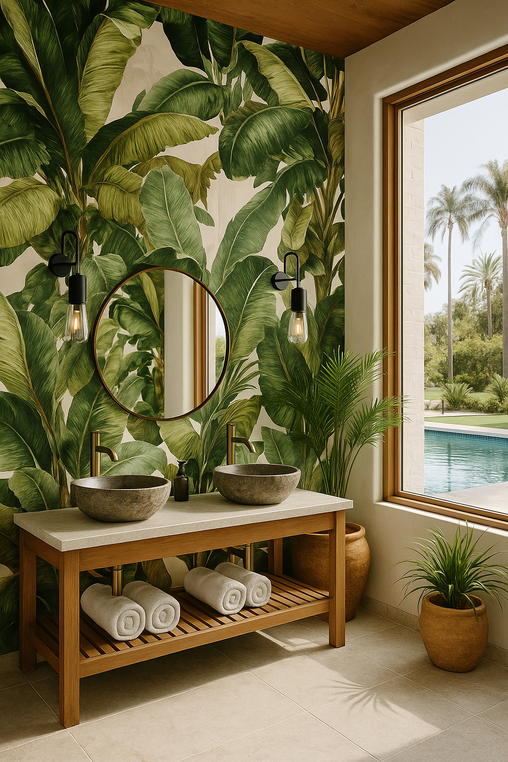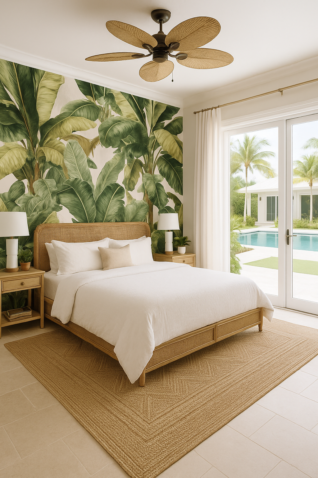 Tropical without cliché, Havana Canopy envelopes you in sweeping banana leaves, gently layered in rich olive and spring green over a sun-washed beige ground. It’s relaxed yet refined, evoking Caribbean breezes, slow mornings, and spaces made for lingering. Whether styled in a breezy sunroom, laid-back living area, or coastal-themed retreat, this design channels tropical heritage through a modern, leafy lens.