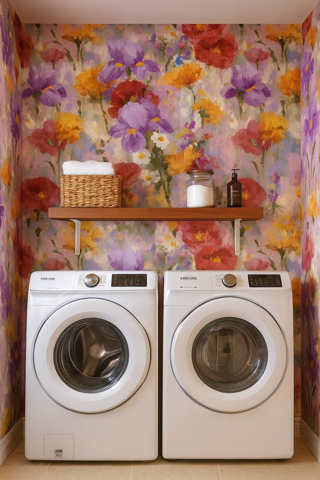 Impressionist Bloom is a lively, artistic explosion of wildflowers—poppies, irises, marigolds, and daisies—painted in expressive brushstrokes across a softened lavender and pastel backdrop. With pops of deep crimson, golden ochre, and violet, this painterly pattern energizes living rooms, eclectic bedrooms, and gallery-style spaces.
