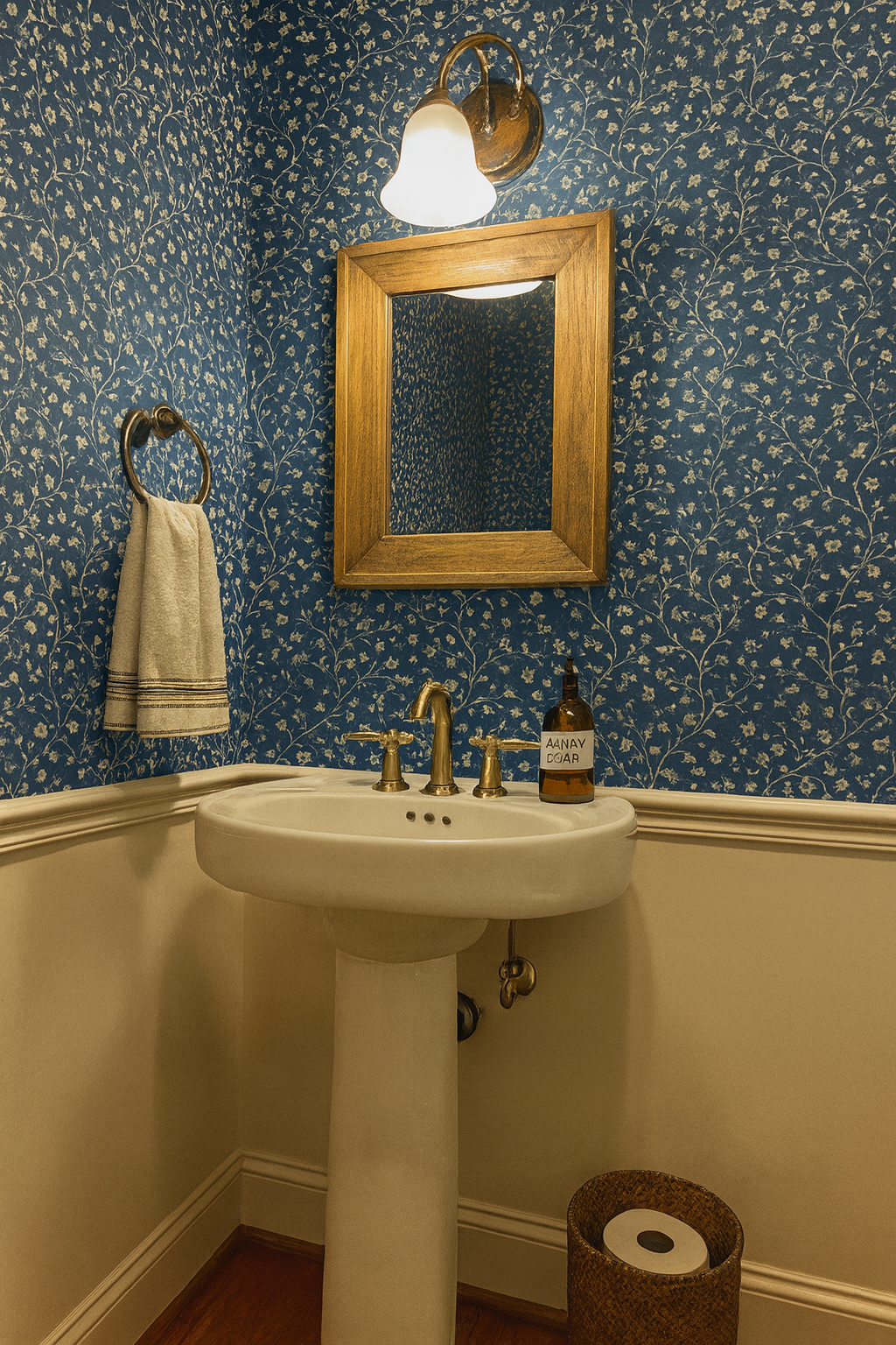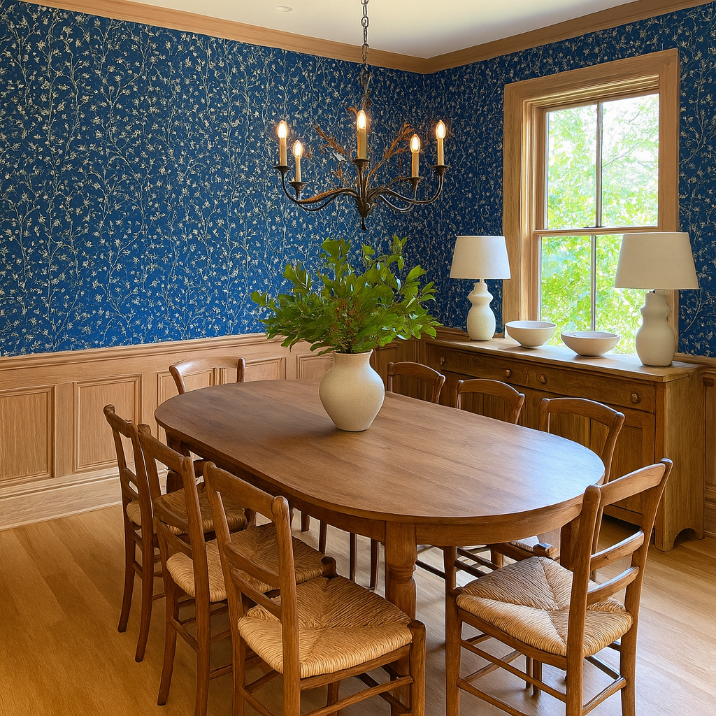 A tapestry of twisting vines and tiny cream blossoms meandering across a deep indigo backdrop, Inkwash Brambletrail evokes vintage block-printing with a touch of midnight magic. The dense, hand-stamped florals bring artisanal charm and soft visual complexity. Perfect for accent walls, powder rooms, or cozy bedrooms, this pattern delivers folk-art elegance with a moody twist.