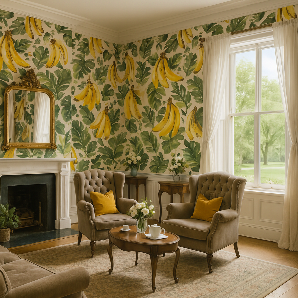 Search terms: banana wallpaper, tropical fruit pattern, jungle leaf wall mural, watercolor banana print