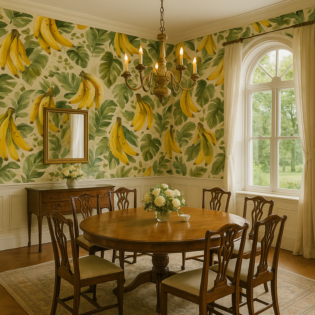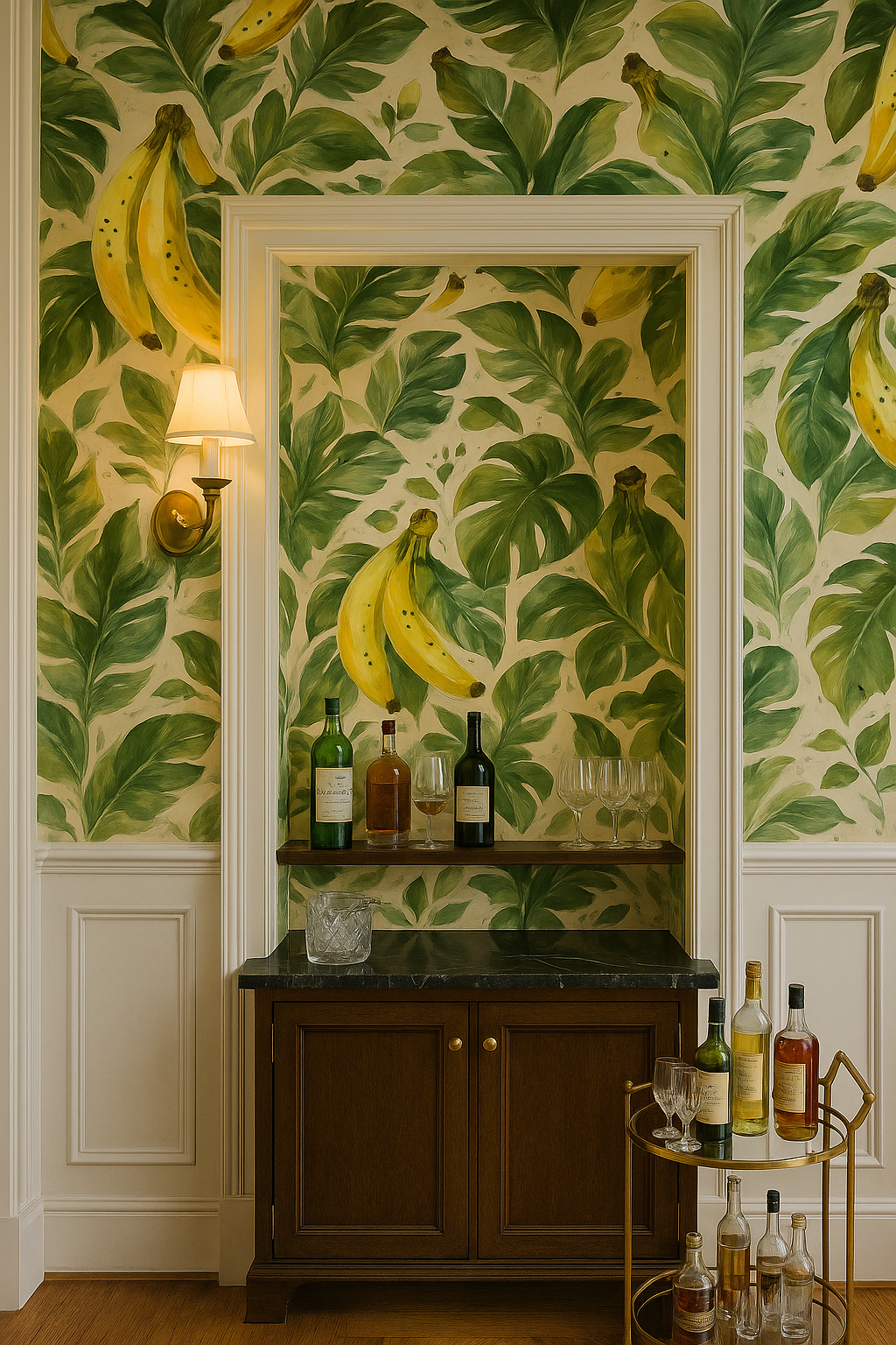 A lush, sun-drenched celebration of tropical ripeness, Jungle Ripe bursts with watercolor bananas nestled among oversized monstera and palm leaves. This pattern captures that sun-warmed, humidity-kissed feeling of a fruit stand in the heart of the jungle. The painterly strokes and soft neutral background balance vibrancy with sophistication, making it perfect for bold kitchens, playful powder rooms, or tropical nursery feature walls.
