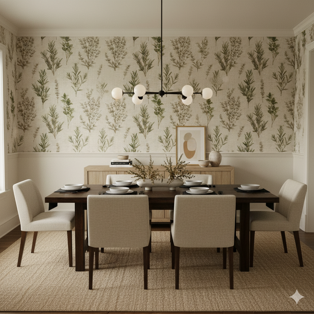 An ode to the apothecaries and herbariums of old Europe, Maison Botanique captures the timeless beauty of rosemary, thyme, sage, and mint pressed upon linen. Each sprig is hand-illustrated with soft botanical precision, layered over a warm natural canvas that mimics the woven texture of vintage parchment. The muted greens and earthy undertones create a soothing organic palette—perfect for farmhouse kitchens, garden rooms, or rustic-inspired dining spaces. Maison Botanique bridges naturalism and nostalgia, offering the charm of botanical illustration reimagined for modern interiors where simplicity and authenticity reign.