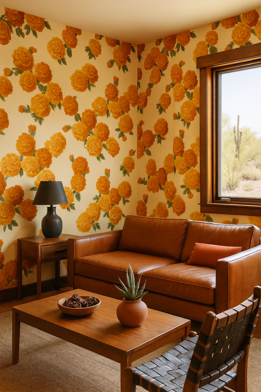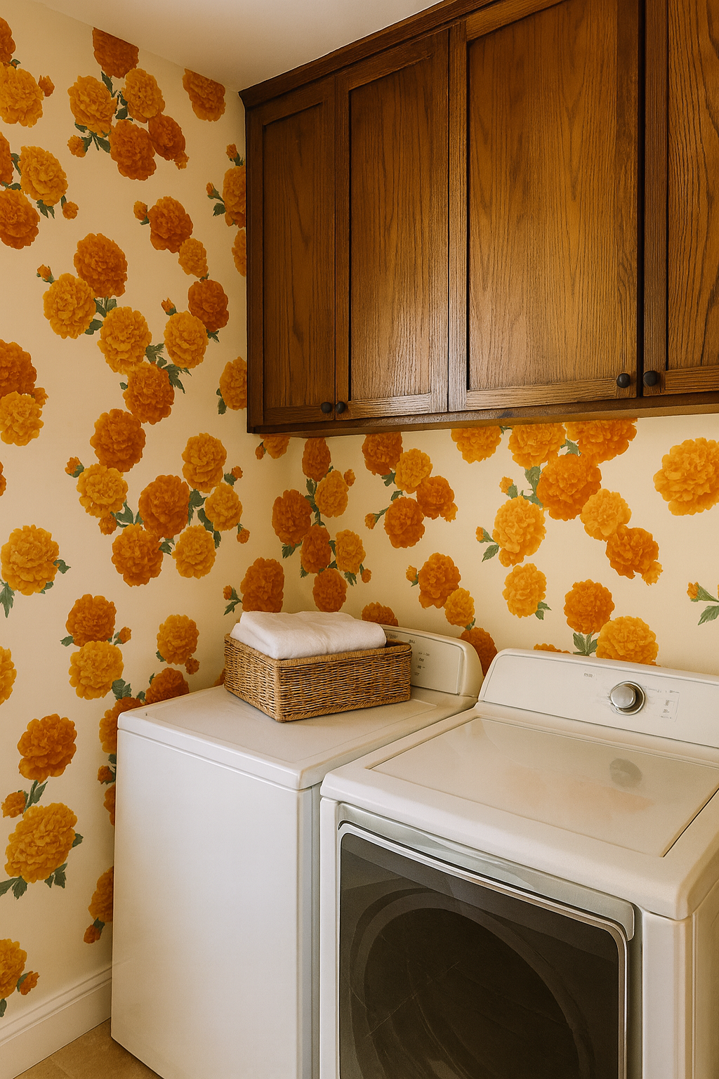 Bursting with the festive charm of marigold garlands, “Marigold Mischief” features clusters of lush orange and golden blooms with verdant green leaves dancing across a warm cream background. The rich, saturated florals are arranged in a gentle diagonal rhythm, giving it a celebratory and organic flow. This vibrant design is ideal for bohemian-inspired living rooms, festive dining spaces, or cheerful entryways that crave warmth and color. Perfect for adding cultural flair to homes or boutique hotels with global or traditional motifs.
