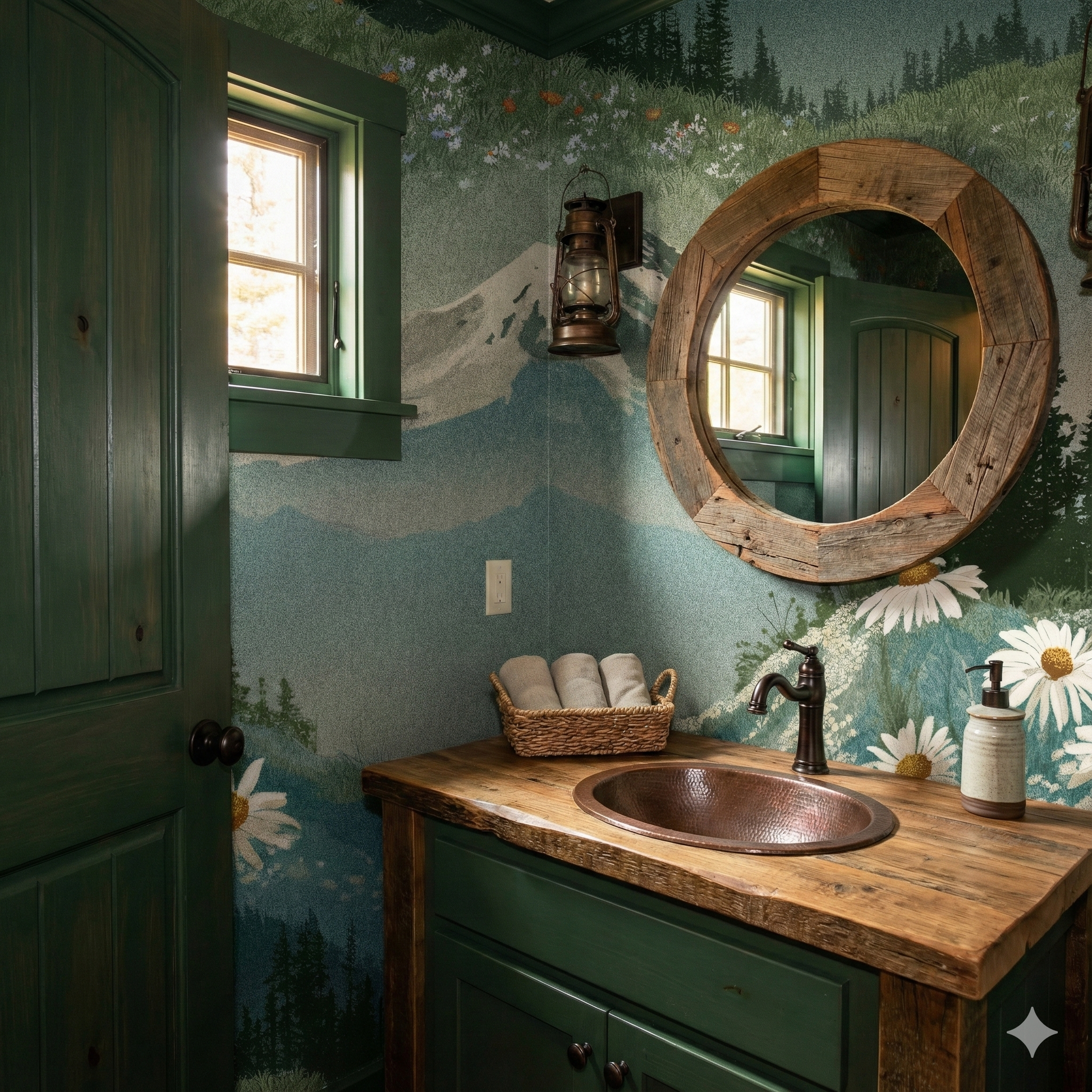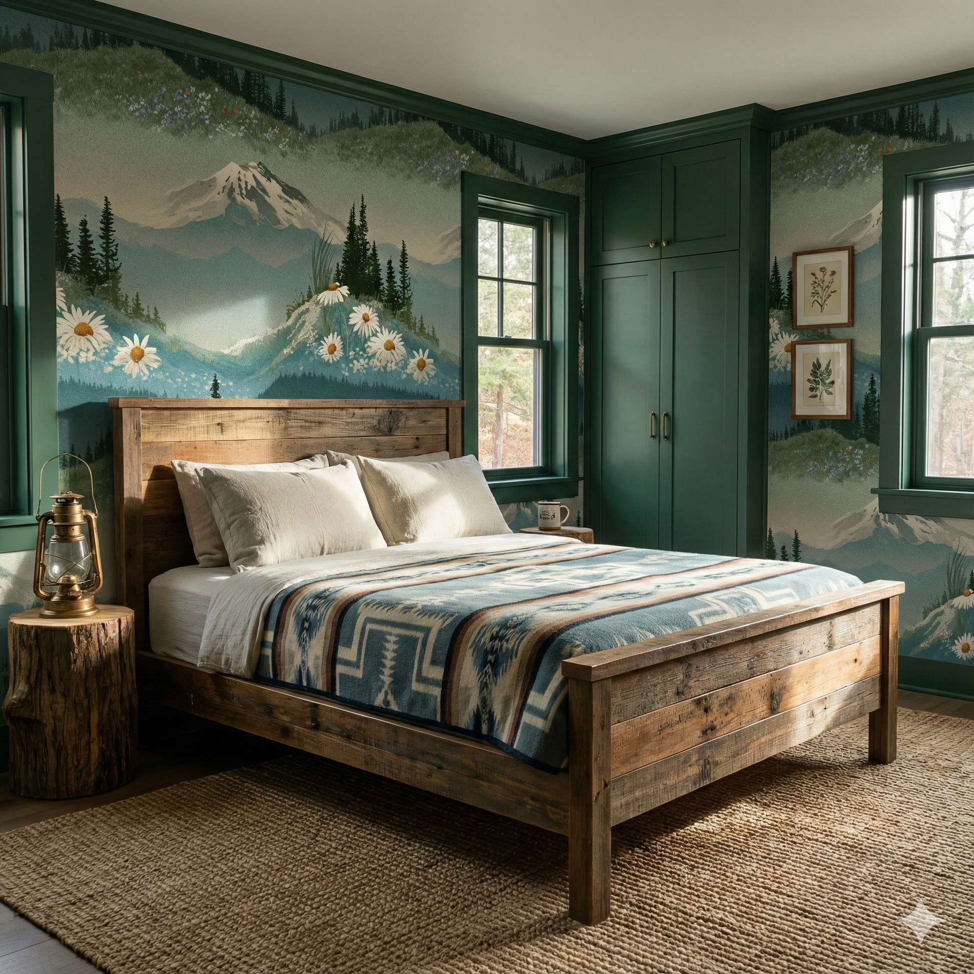 “Meadowlight” is an ode to the Pacific Northwest—where daisies and alpine blooms spill across grassy slopes beneath a distant snow-capped peak. The design’s layered gradients of misty teal and evergreen feel almost cinematic, fading into soft atmospheric blues. Each brushstroke captures the tender shift from meadow to mountain, lending a painterly, dreamlike depth. This wallpaper works beautifully in bedrooms, nurseries, or any space meant to feel nurturing and alive. It blurs fine art and landscape into something quietly romantic and enduringly fresh.