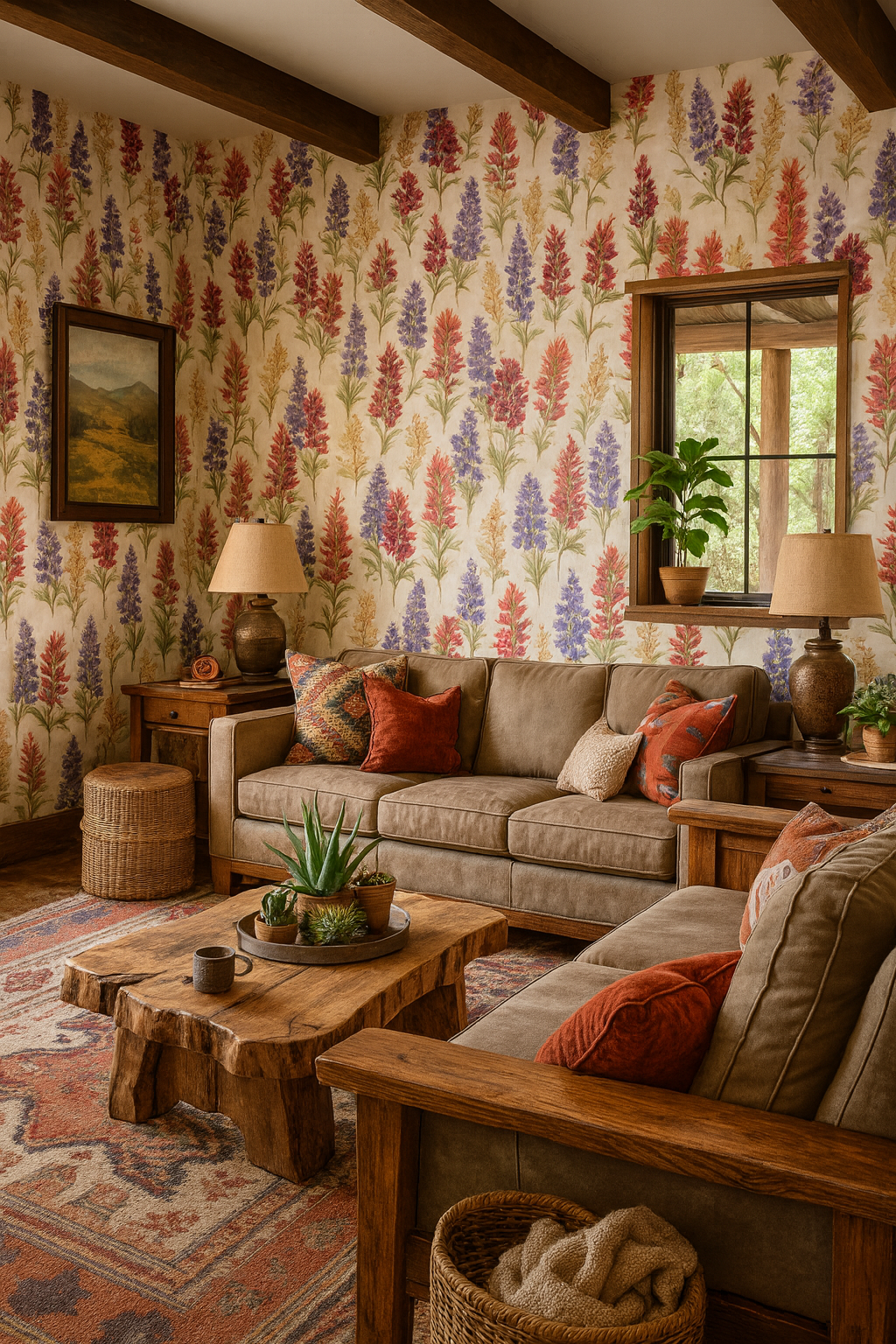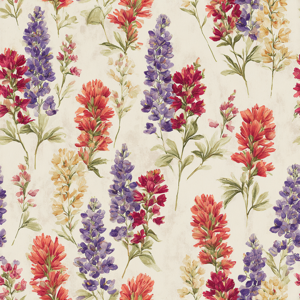Wild and whimsical, Montana Meadow features native alpine blooms like Indian paintbrush and lupine in shades of red, violet, yellow, and cream. Set against a subtle parchment ground, this floral tapestry is ideal for rustic cabins, nature-lover nurseries, or mountain chalets yearning for a touch of meadow magic.
