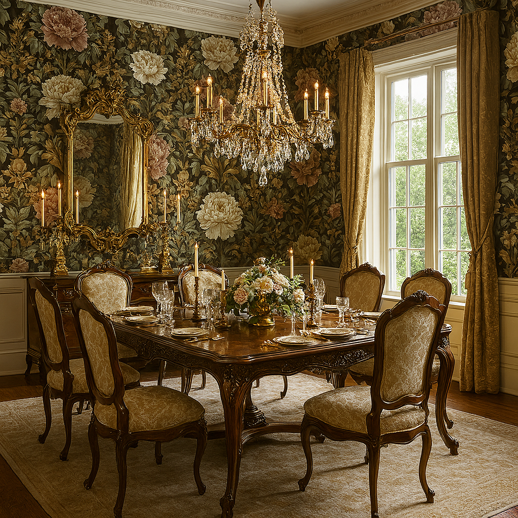 Delicate and moody, Noir Blossom sets soft blush florals against a jet-black background, creating drama through contrast. Each flower appears hand-painted, with translucent petals that glow against the dark. Ideal for romantic bedrooms, boutique lounges, or sultry powder rooms—this wallpaper is quiet, sexy, and sophisticated all at once.