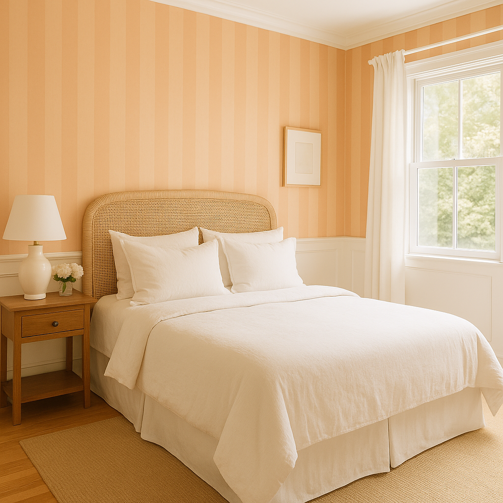 Peach Blush Plains Wallpaper offers understated warmth through broad painterly stripes in soft peach and blush tones. The tone-on-tone palette creates subtle texture that pairs effortlessly with modern, feminine, or minimalist interiors. Use it in bedrooms, powder rooms, or living spaces where you want to add gentle color without overwhelming the decor. A top choice for anyone seeking peach wallpaper, blush striped wallpaper, soft modern wallpaper, or tone-on-tone neutral wall designs.