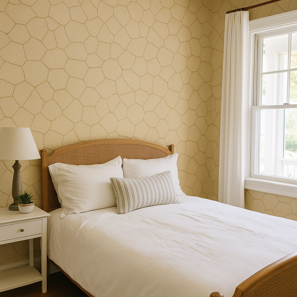 Cracked earth and natural geometry meet in Saltpan, a textured neutral wallpaper inspired by the parched beauty of dried salt lakes and desert basins. Its irregular, organic lines mimic the cracked surface of nature’s most elemental textures — evoking stillness, dryness, and grounded energy. Perfect for Japandi, wabi-sabi, or southwestern minimalist spaces, this pattern is subtle yet evocative, offering quiet depth and earthbound calm. Think of it as a soft whisper from the desert floor.
