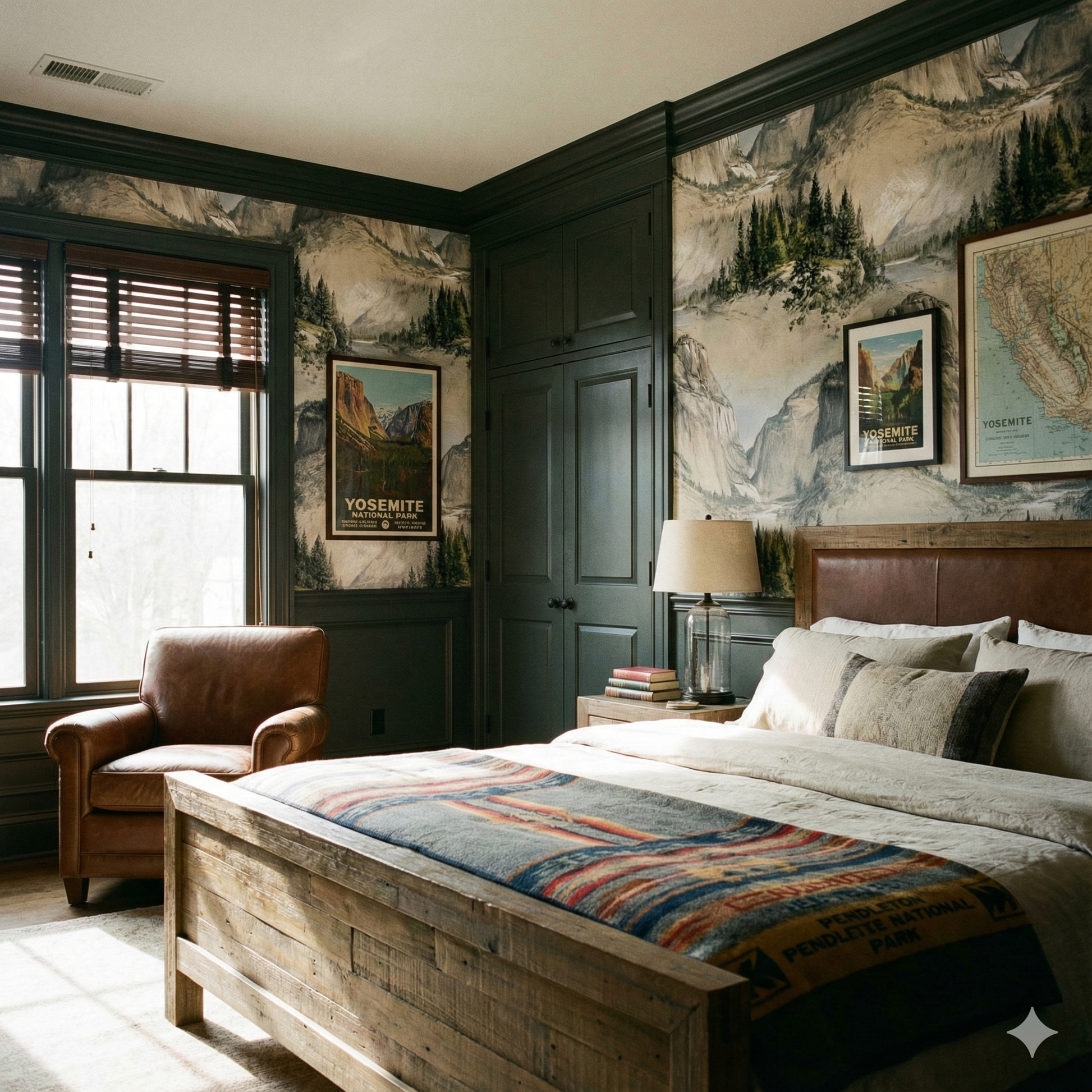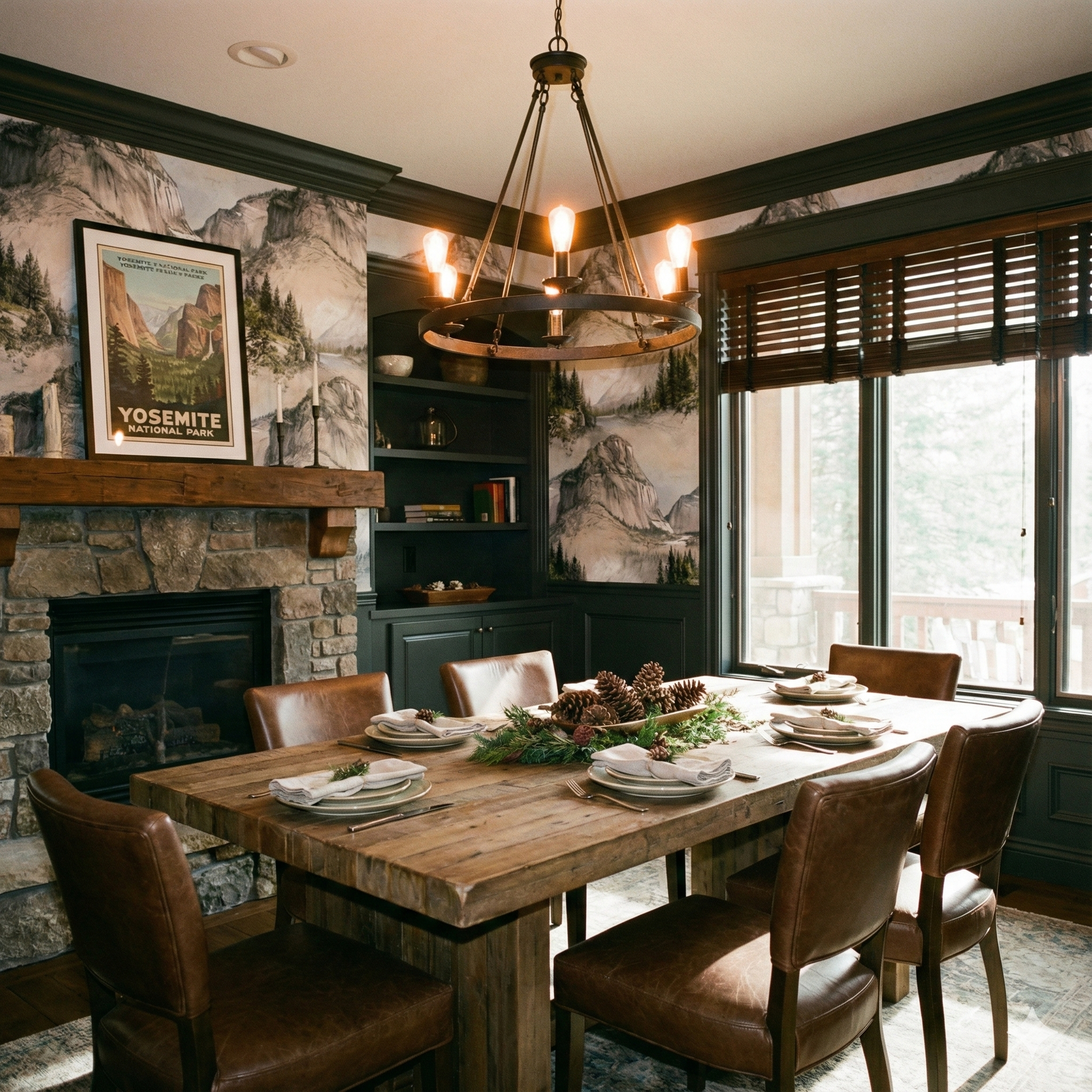 This wallpaper evokes the quiet majesty of Yosemite rendered through the delicate hand of a 19th-century naturalist. The scene unfolds in soft graphite tones and pale washes of green, tan, and stone, depicting pine-studded cliffs, meandering rivers, and the timeless geometry of granite domes. The fine pencil lines and muted palette give it the look of an archival lithograph—perfect for those drawn to understated luxury. It feels both intellectual and serene, ideal for a study, library, or reading nook where history and artistry intertwine. In larger spaces, its depth and tonal balance create the illusion of expansive air and distance, like living within a vintage landscape sketch.