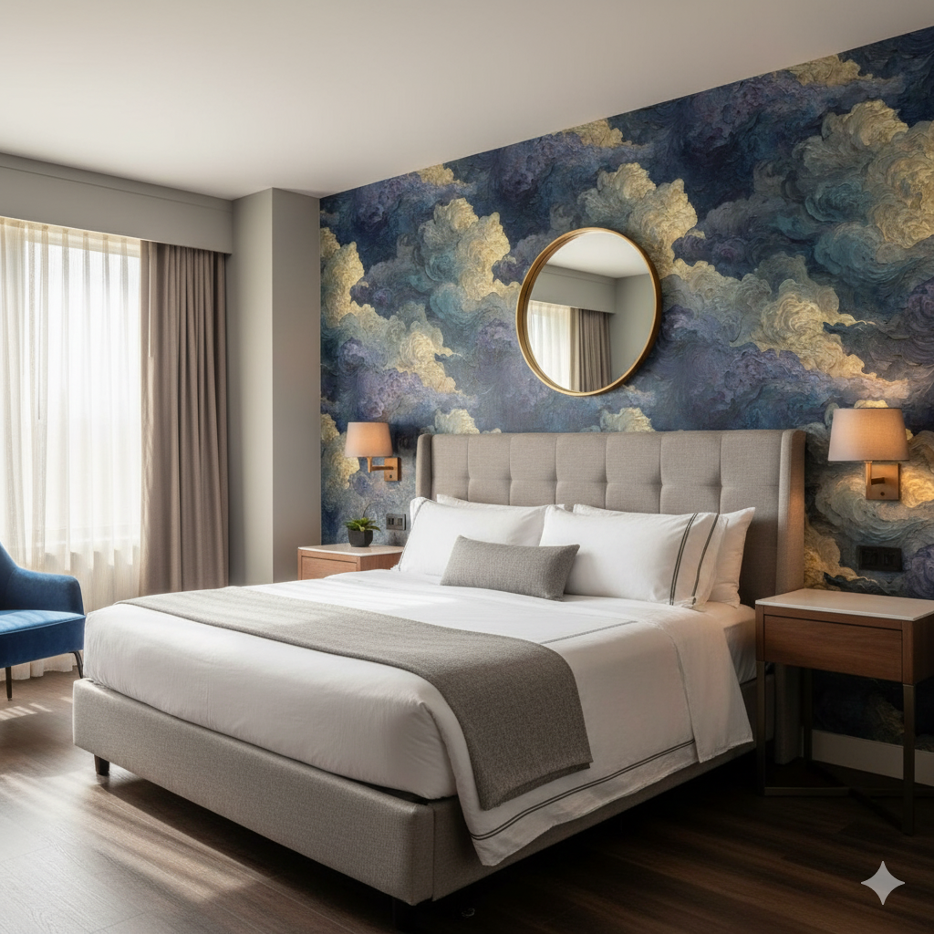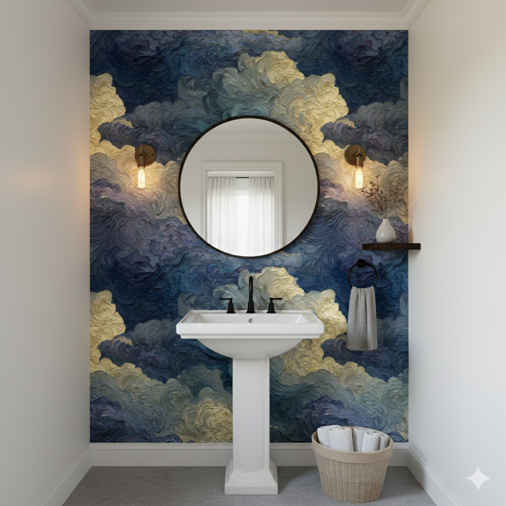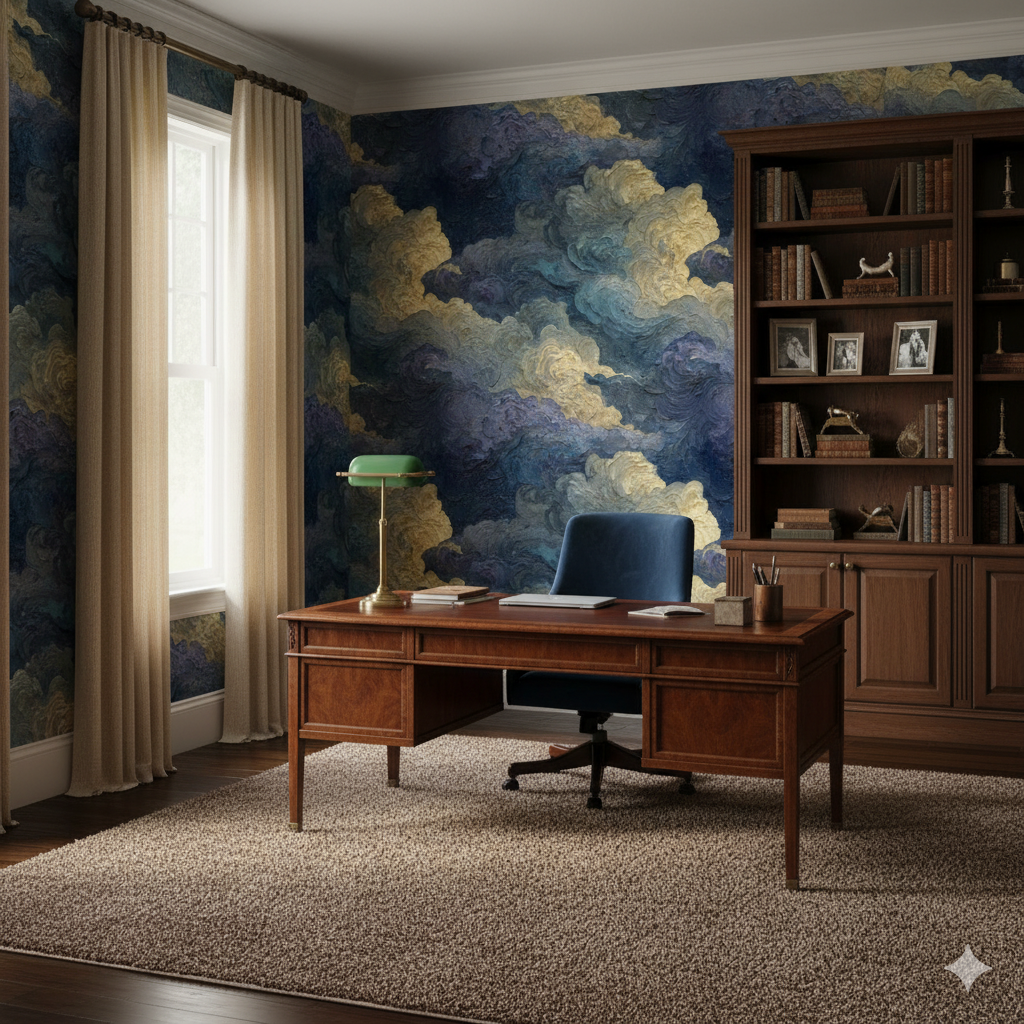 Richly textured brushstrokes build voluminous, swirling storm clouds in layered tones of indigo, slate, ochre, and ivory. The painterly strokes capture turbulence and grandeur, transforming the sky into a living, breathing work of art. Tempest Oil feels as though pulled straight from the canvas of an expressive painter, with its thick impasto textures almost leaping from the wall. Perfect for dramatic accent walls in dining rooms, living areas, or hotels, it delivers a sense of artistic gravitas and visual depth.