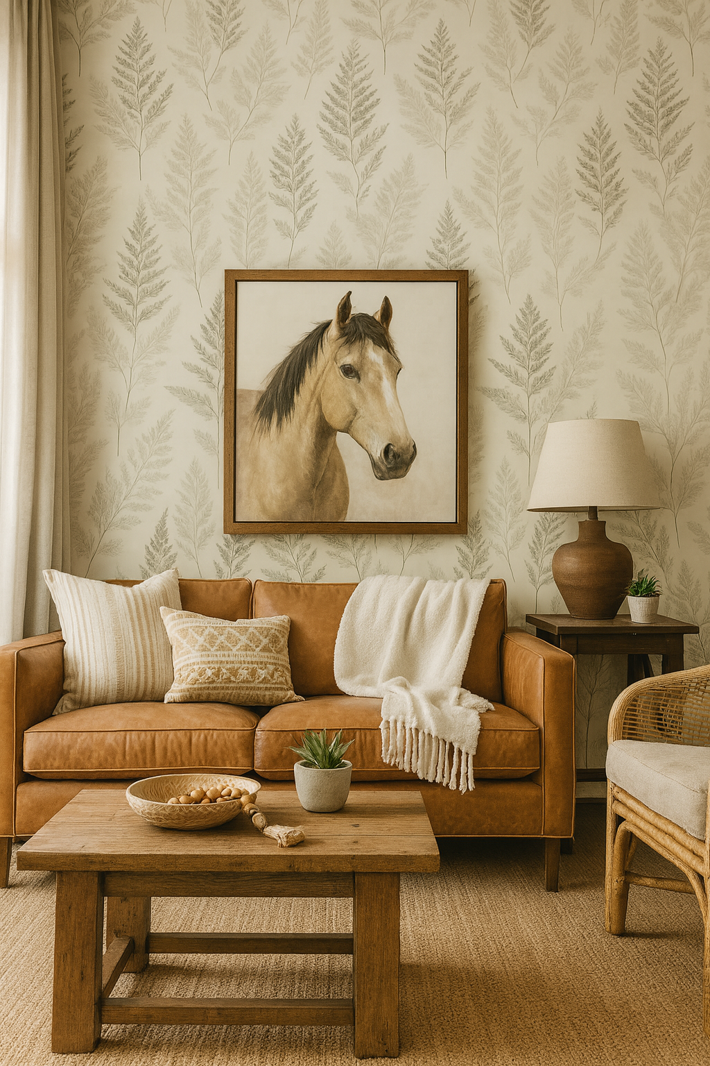 Soft and ethereal, Whisper Fern Ink showcases fine pencil-style sketches of fern fronds delicately spaced on a pale parchment-toned background. The monochromatic elegance and minimalist nature-inspired design evoke calm and quiet sophistication. Perfect for powder rooms, reading nooks, or spa-inspired interiors, this pattern adds organic beauty without visual noise.
