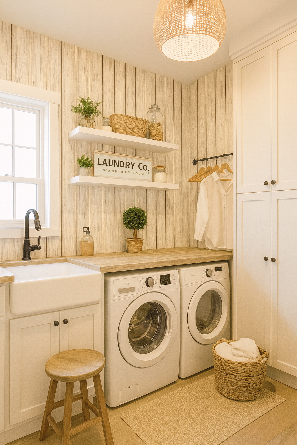 Rustic meets refined in "Whitewashed Planks," a faux wood wallpaper mimicking aged timber boards with a light, sun-bleached finish. The vertical planks in soft gray and beige tones offer texture without heaviness, making it ideal for farmhouse kitchens, modern cabins, or coastal mudrooms. A great way to bring warmth and dimension to walls without the permanence of real wood, this peel-and-stick plank wallpaper feels natural and timeless.