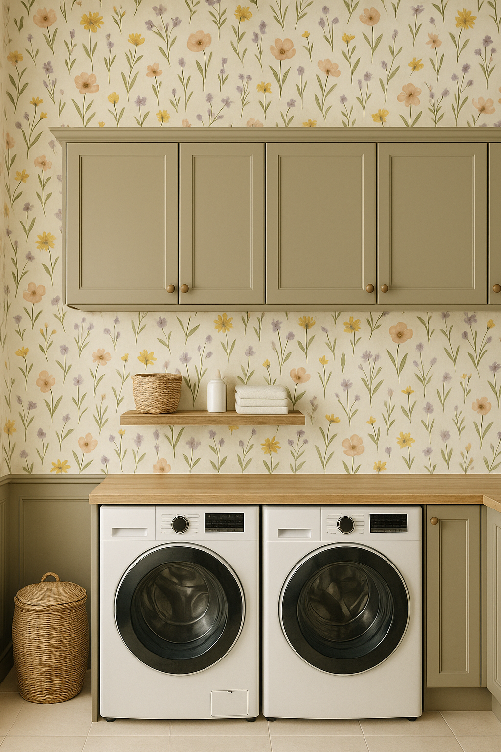 Wildflower Waltz Wallpaper brings a joyful garden to life with delicate wildflowers in soft yellows, blush pinks, and earthy greens, scattered gracefully across a creamy background. This fresh and feminine design is ideal for brightening bedrooms, nurseries, reading nooks, or any space craving an infusion of nature’s charm. Perfect for customers searching for wildflower wallpaper, vintage floral wallpaper, modern cottage wallpaper, or whimsical botanical wall coverings.